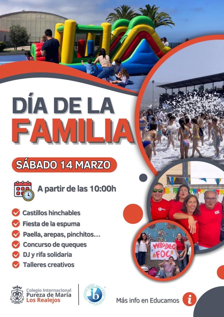 El próximo sábado 14 de marzo celebraremos el Día de la familia. Organizado con mucho cariño por el AMPA, será un día para disfrutar juntos como comunidad educativa: familias, alumnado y profesorado. 10:00 h – Eucaristía. Comenzaremos dando gracias a Dios por el curso vivido y por el regalo de ser familia. Desde las 10:30 […]